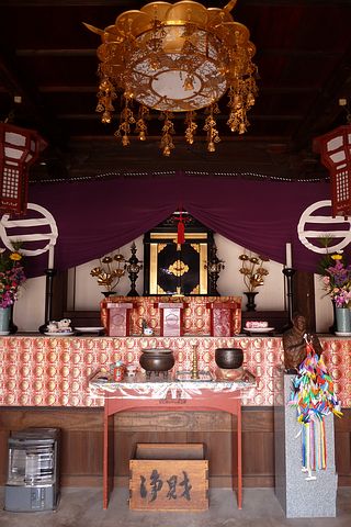 一、本堂。本尊、阿彌陀如來。右座、不動明王。左座、弘法大師。毘沙門天。