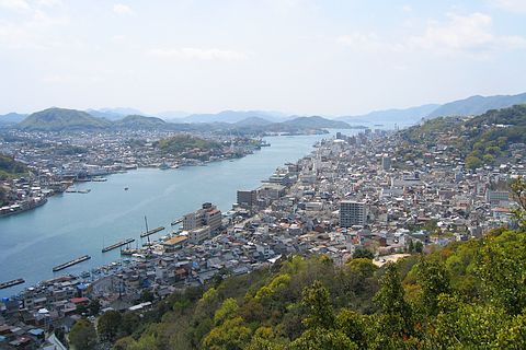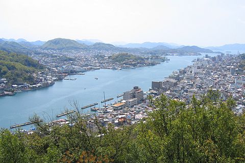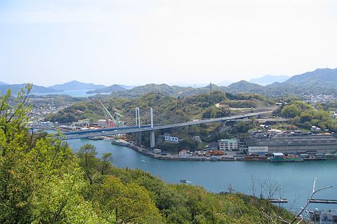 正面に新尾道大橋・尾道大橋、向かって左に百島