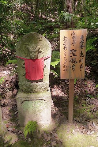 此の山の靈木を伐、觀音の尊容を手刻し、此谷に深く秘し藏しめ給ひしによりて