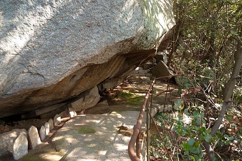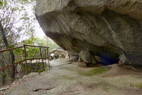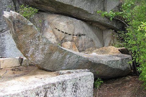 此谷中に大蛇の伏し寝たりしが、大石一ツ口にくわへ出たりと云、