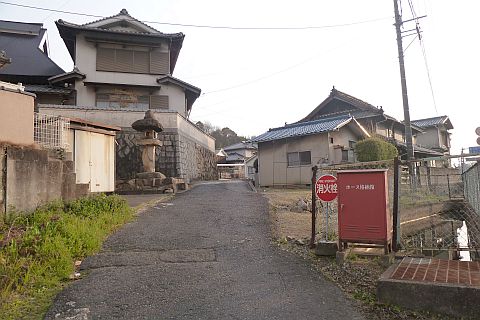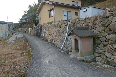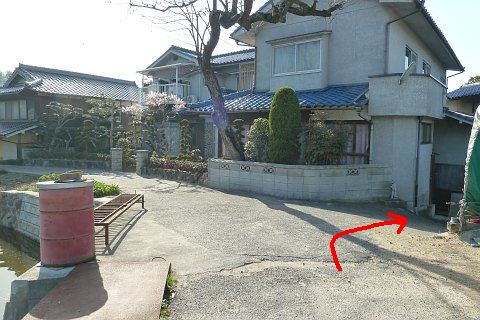 民家と民家の間の細道を北西へ23m下って右折。