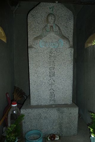 奉勧請四國八十八箇所の石碑(弘法大師坐像?)