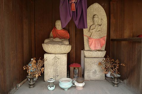 大師堂の横にある石仏群の中に千手観世音菩薩立像2体が含まれている。