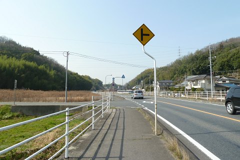 県道3号線の丁字路を左折し、車道を西へ400m進む