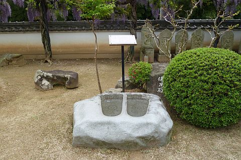 向かって右にあるのは陶山一族の供養墓(五輪石塔)