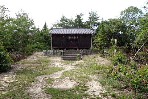 「笠岡市史 第一巻(pp.113-114)」によると「屋敷跡と思われる石垣上の畑地が中心となっている。