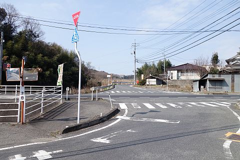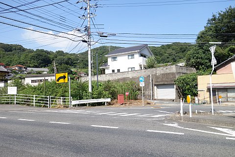 笠岡陶山郵便局前の県道交差点(有田と押撫の村境)