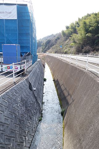 土橋より上流は側壁のみコンクリート護岸化され、自然河床が残されている