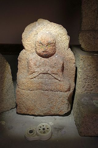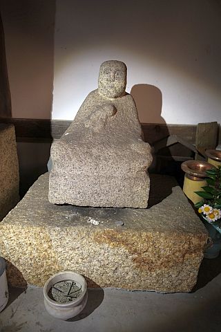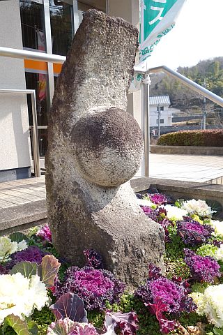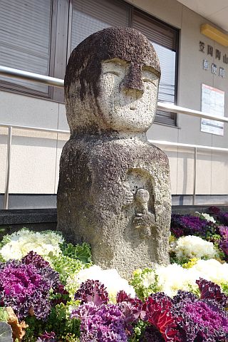 笠岡陶山郵便局の前にユニークな地蔵菩薩像が安置されている。