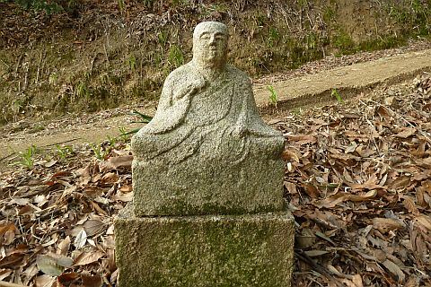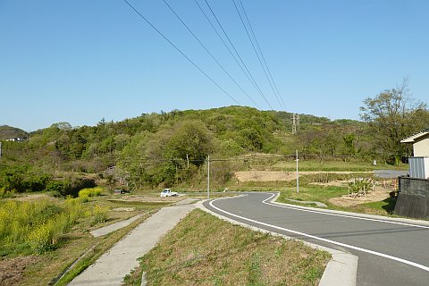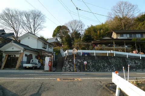 陶山小学校北東の県道377号線から右折して墓地への参道を上る