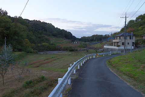 池の土手から下りて車道に戻り、右折して北へ42m進む。