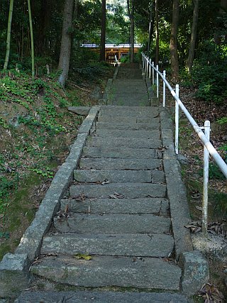 石段を南へ43m下り、左折して細道を東北東へ65m下る