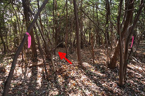 竹藪の中にあるので判りにくい。標柱は昭和59年6月15日に建立。