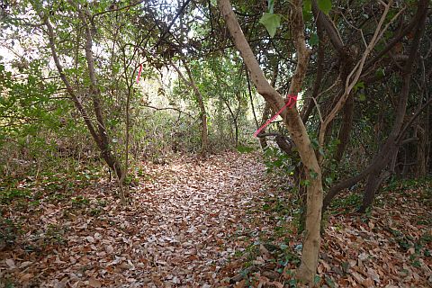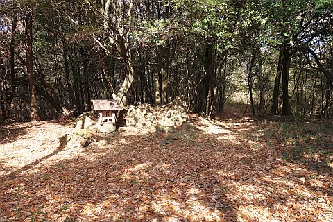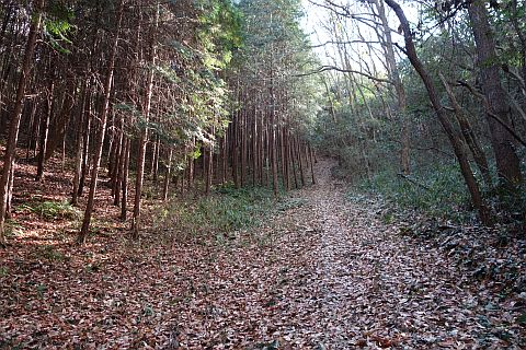「神の峰」の矢印がある丁字路を右折。細道を南南東へ130m程上る。
