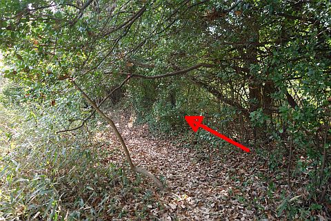 県道377号線を右折し、民家の横の細道を南へ15m上る
