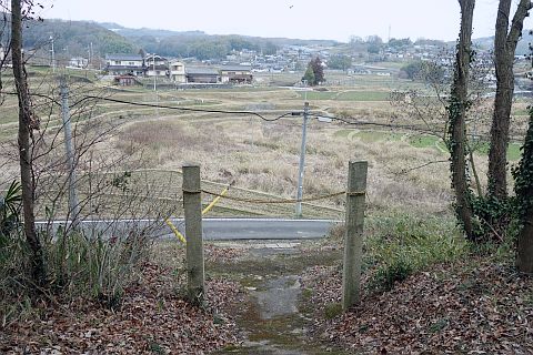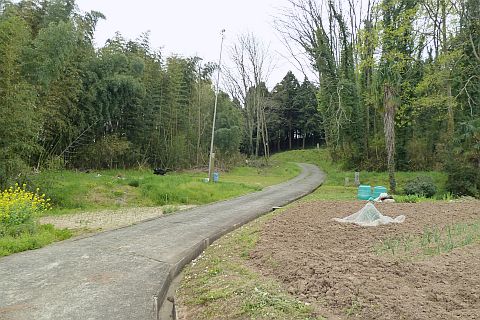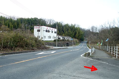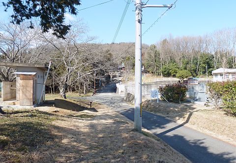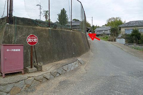 丁字路から県道377号線を北へ178m上り、十字路を右折して東へ87m上る。