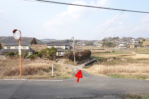 池の横にある十字路を左折し、細道を北へ35m上る。
