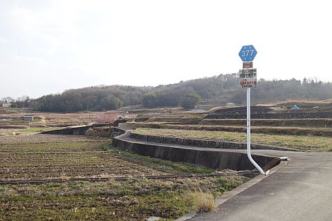 県道377号線の標識がある丁字路に戻り、東へ97m上る