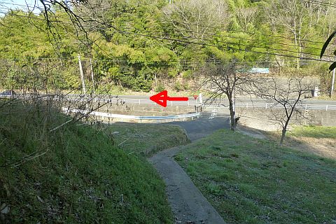 集会所前に戻り、南南東へ54m進んで右折し、県道34号線を北西へ170m下り、