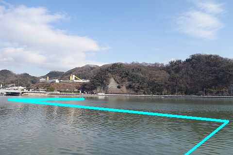 南北約75m、東西約178m、周回約410m。池の西端は城見隧道。