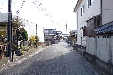 東へ35m進んで右折し、細道を南南東へ190m進む