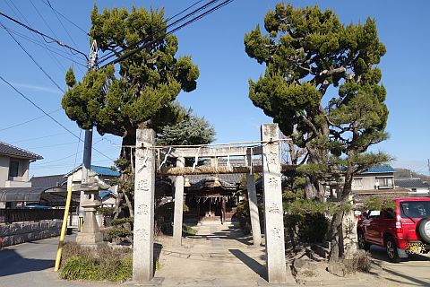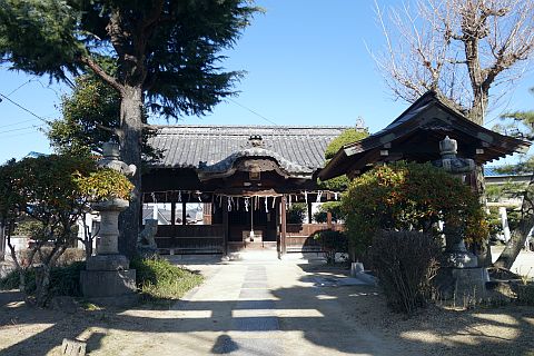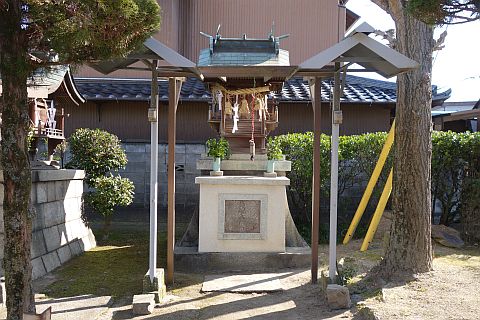 社地反別一反三畝歩、氏子は本町百七十七戸なり。境内建物本社梁行二間三尺、桁行三間、