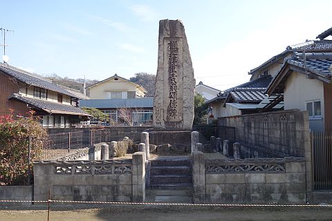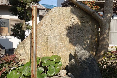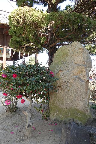 後ろにあるのは日露戦争(明治三十七・八年戰役)における生江浜出身の戰病歿者の墓誌