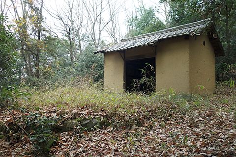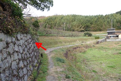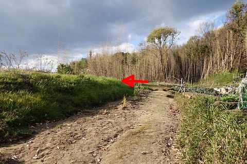 トイレの後ろにある細道を西南西へ22m、北北西へ14m上る