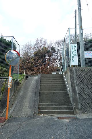 徒歩の場合は、みどりヶ丘コミュニティーセンター前の階段を上り、