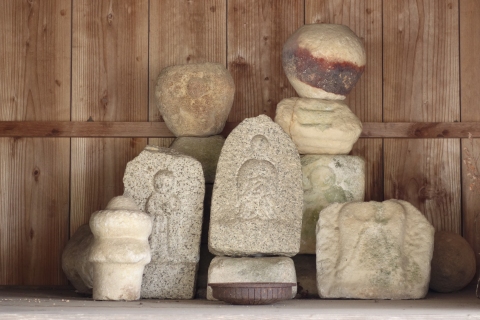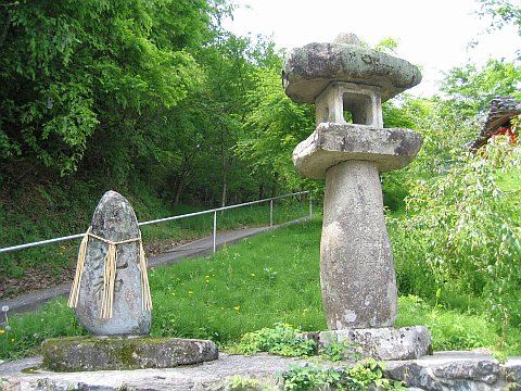 コゴメ石の石像2躰(地蔵菩薩像?)等が安置されている