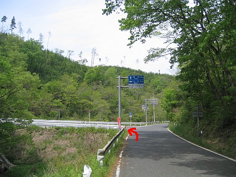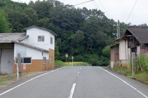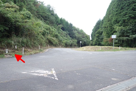 梨ノ木峠の丁字路(↑成羽13km/←三山4kmの案内標識あり)を左折し、南西へ1.5km進む。