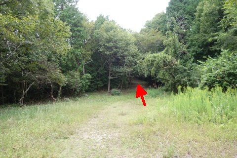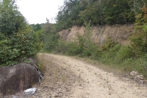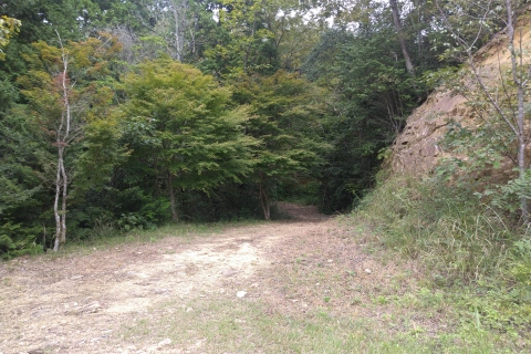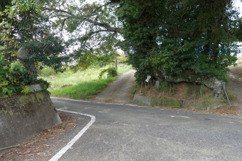 石標から北北西へ60m戻った所から、未舗装路を南南東へ70m下る