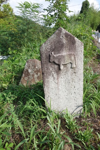 亡牛供養碑兼道しるべ(牛)
