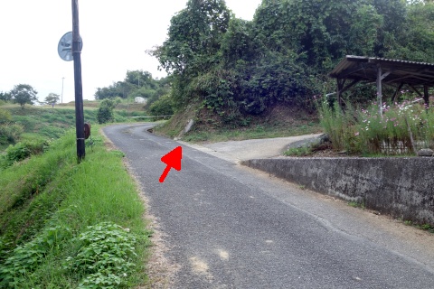 中山の観音堂前に戻り、左折して県道を西へ340m下る