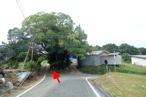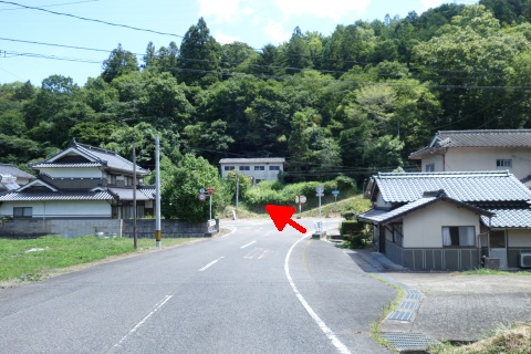県道48号線の手前(東)の丁字路を左折し、南南東へ27m進む。
