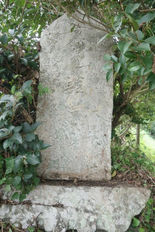 向かって右側面に建碑の経緯が刻まれているが、苔むしているため判読困難。