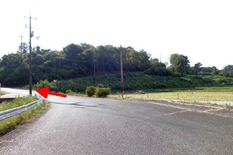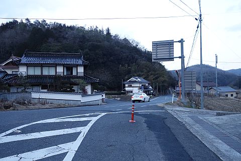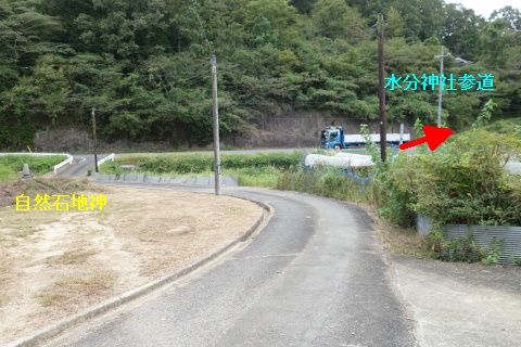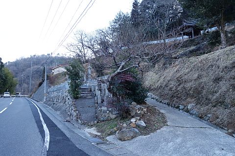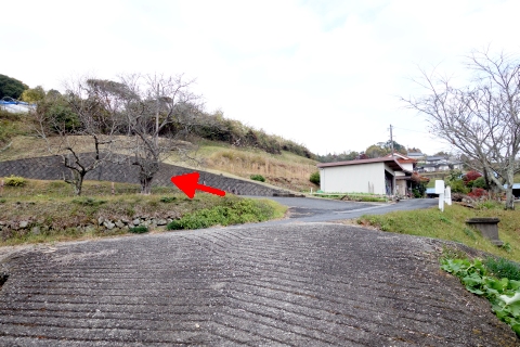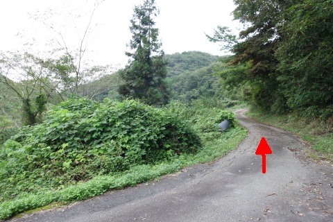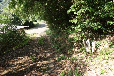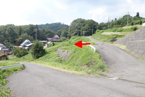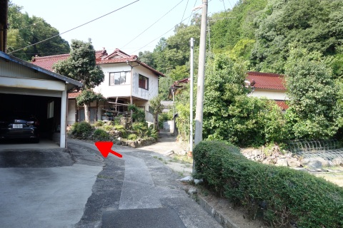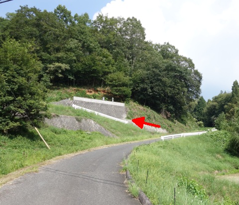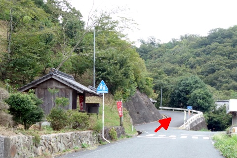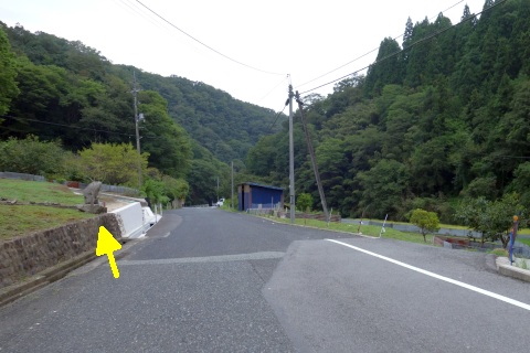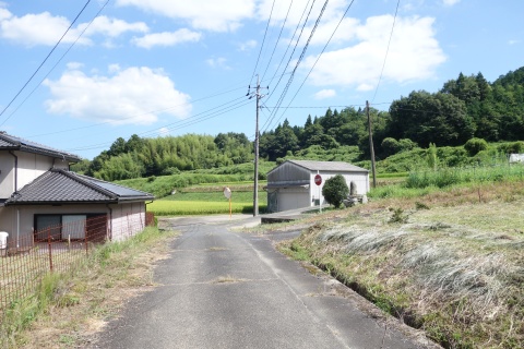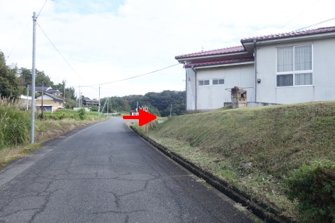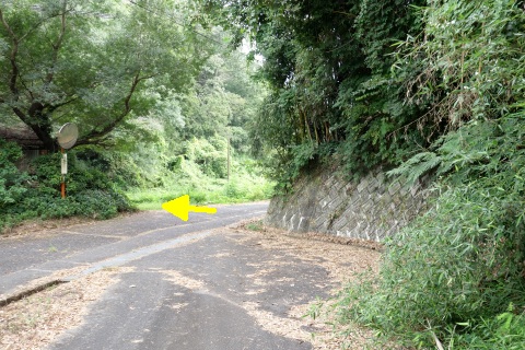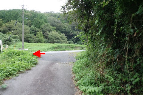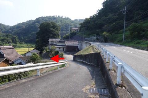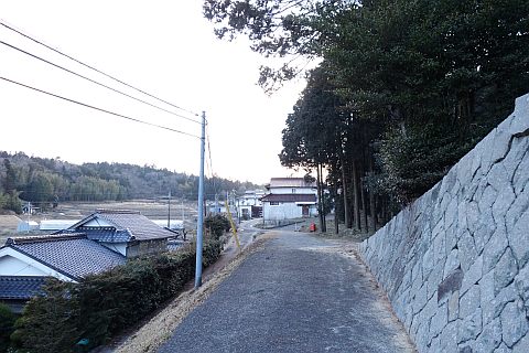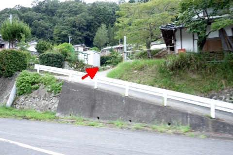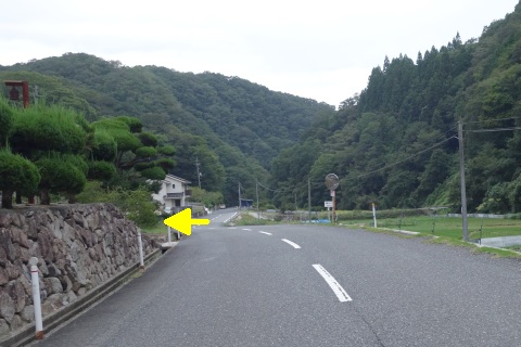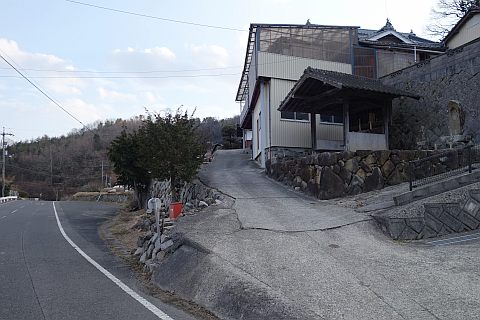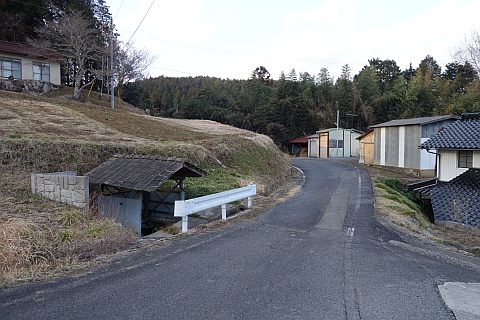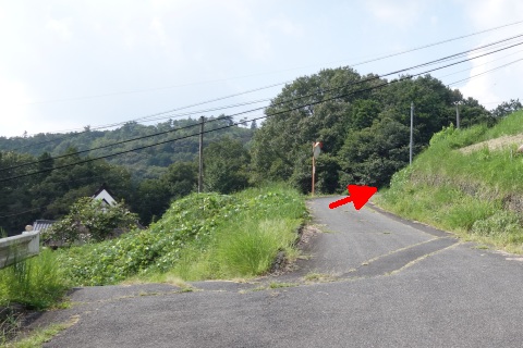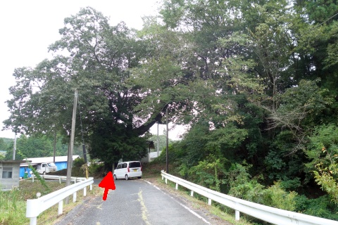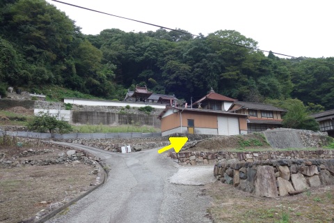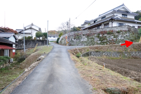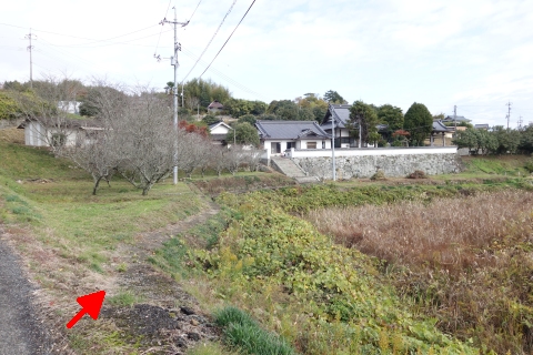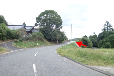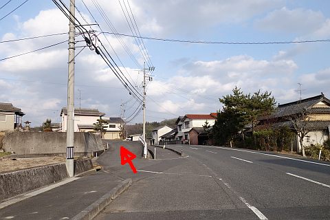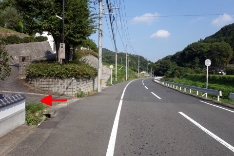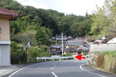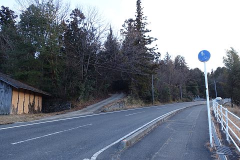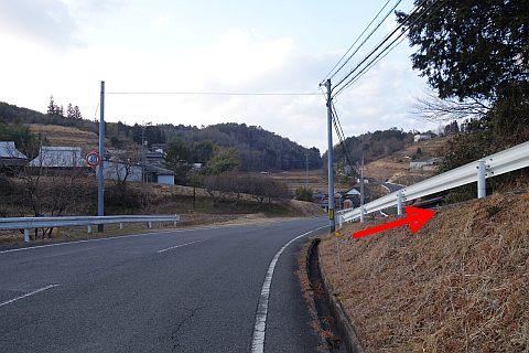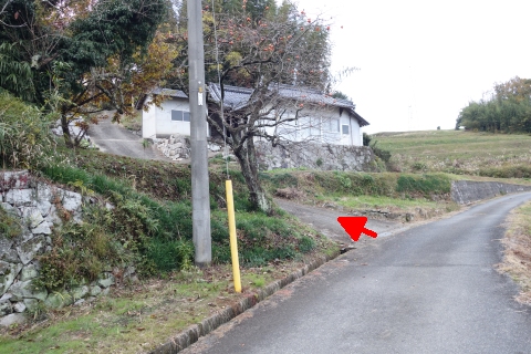 県道293号線を南へ45m進み、Y字路を左折して細道を南南東へ109m上る。