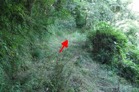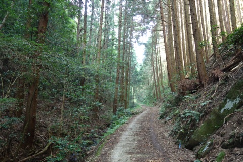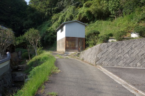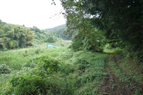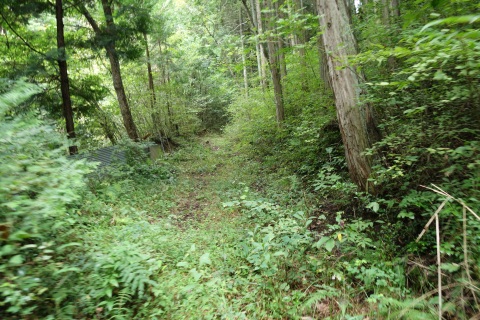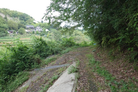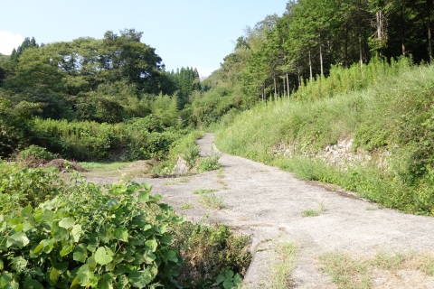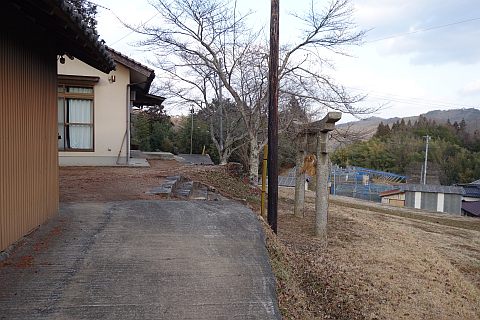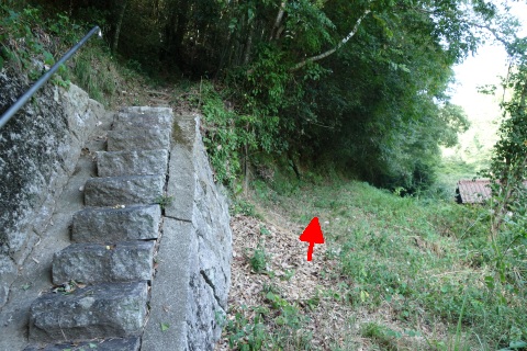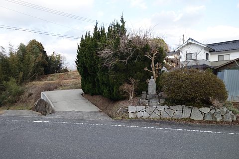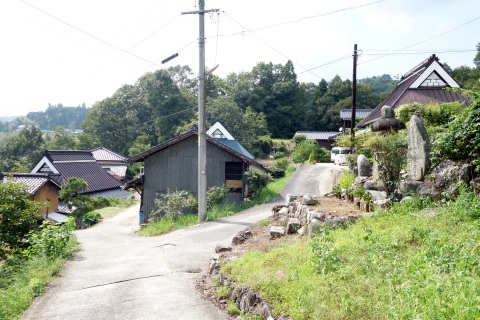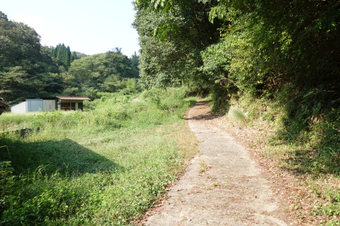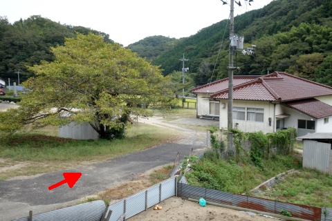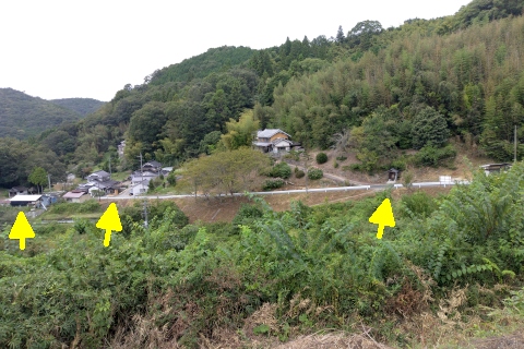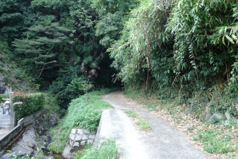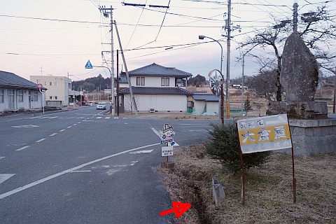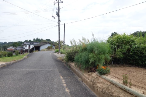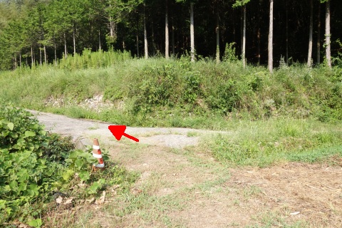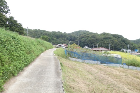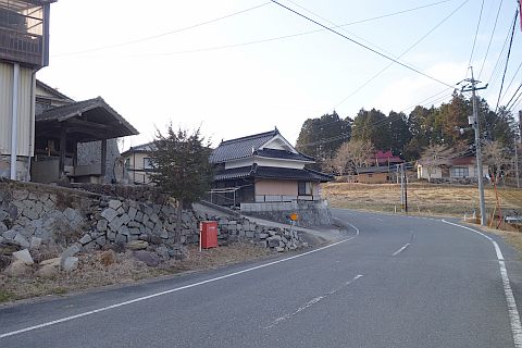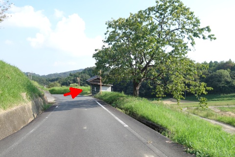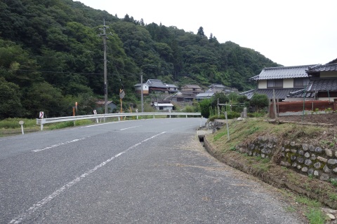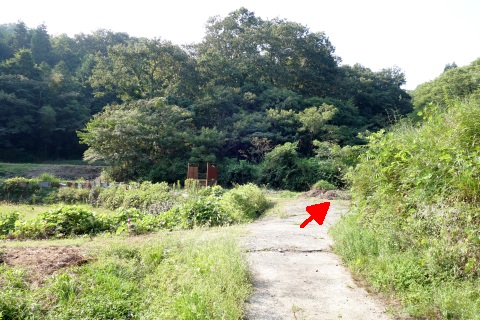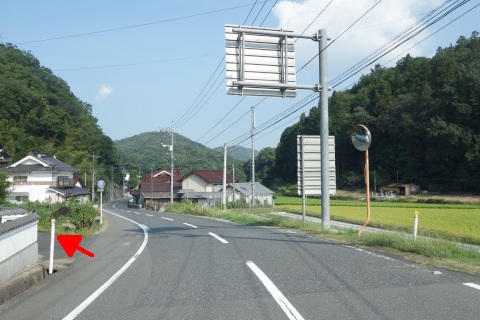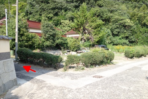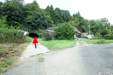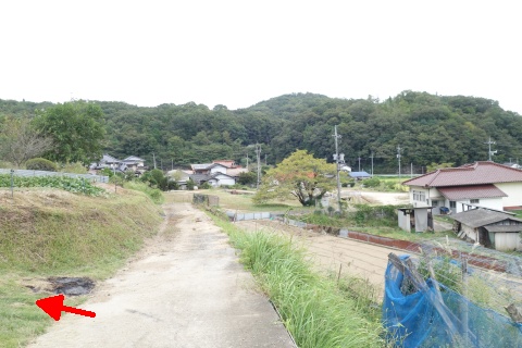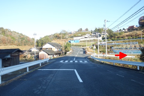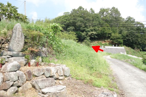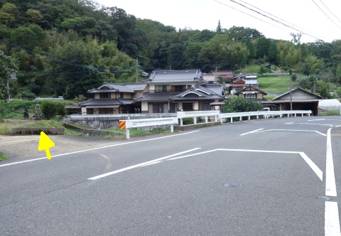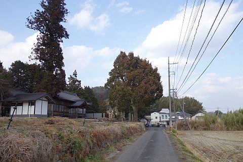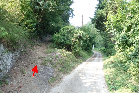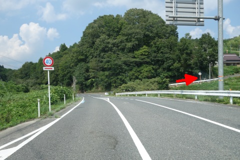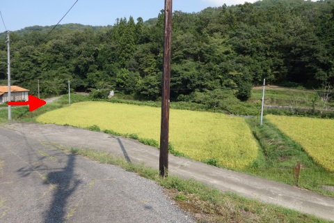 県道293号線を南へ45m進み、Y字路を左折して細道を南南東へ109m上る。
