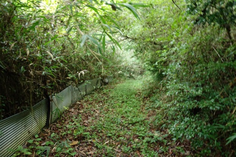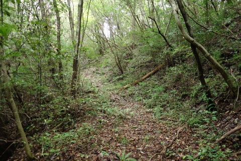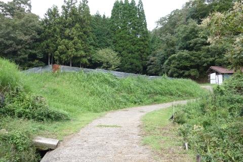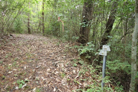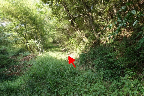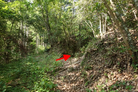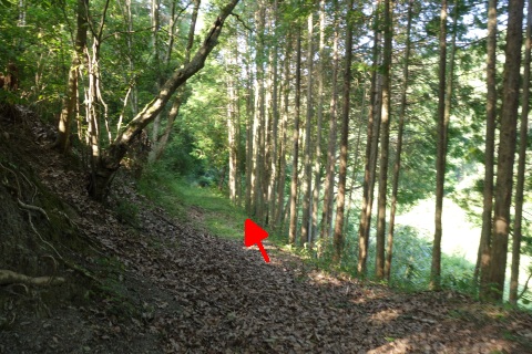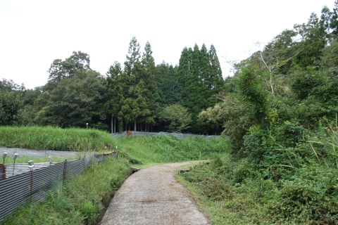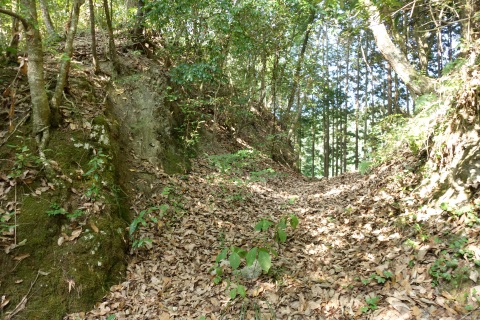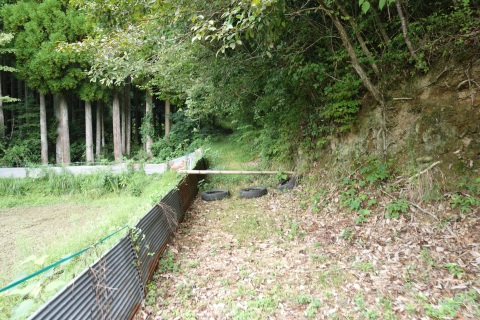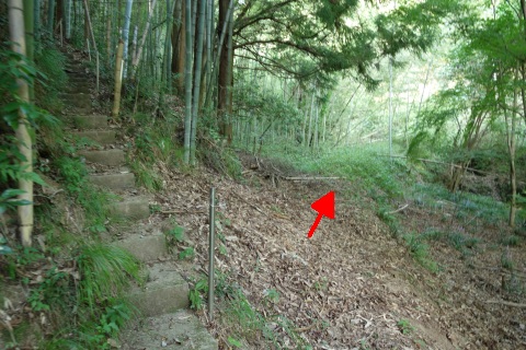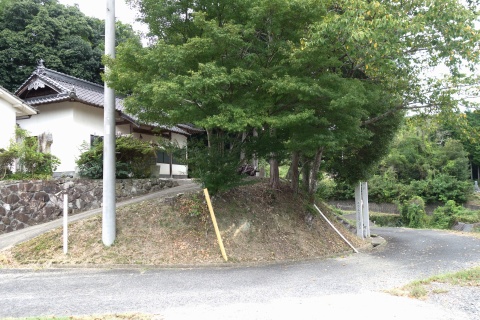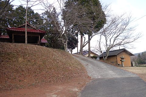 カーブミラーの脇から未舗装路を東へ200m上ると星田茶臼山城跡、杵築神社に至る