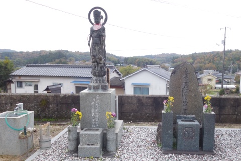 之より先當地法雲山城主三村藏之介貞親、武運長久*祈願の爲 立像(※妙見菩薩像)を寄進し、
