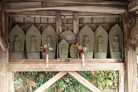宝篋印塔型の供養塔と地蔵菩薩像群