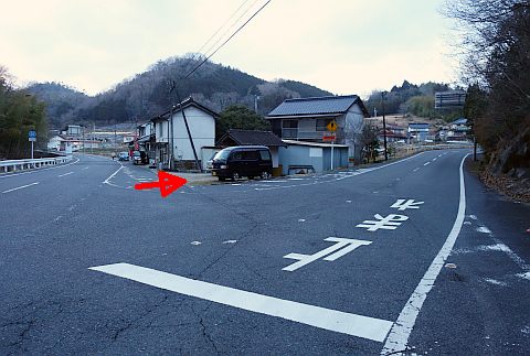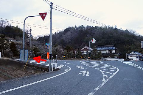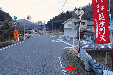 美星大黒天から西へ240m進んだ所にある丁字路