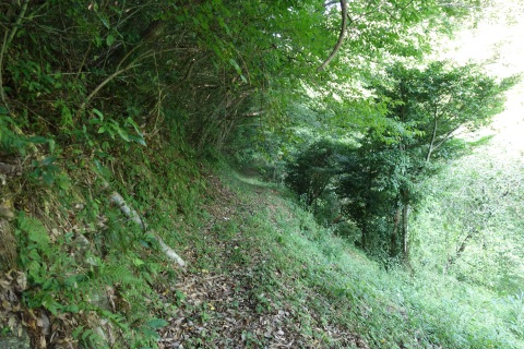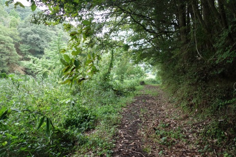 南へ97m下り、Y字路から南(右)へ625m下り、五叉路を左折。