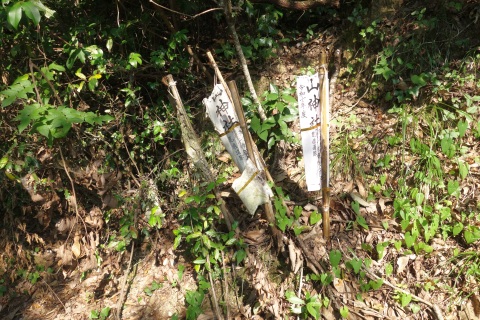 山神社前から北へ75m、南へ136m下り、丁字路を右折して南南西へ445m下る。