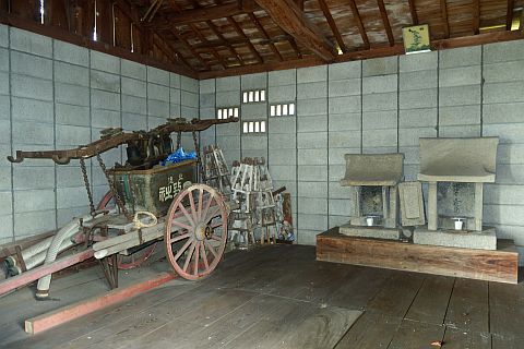 消防ポンプを積んだ大八車