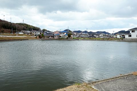 尾池の西端にある五叉路(横断歩道あり)を右折。