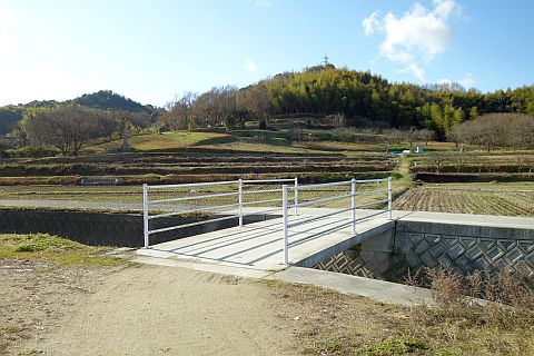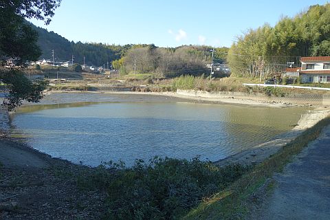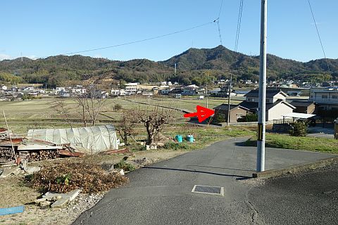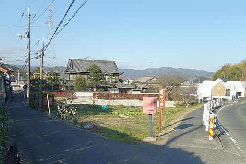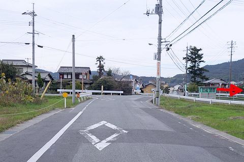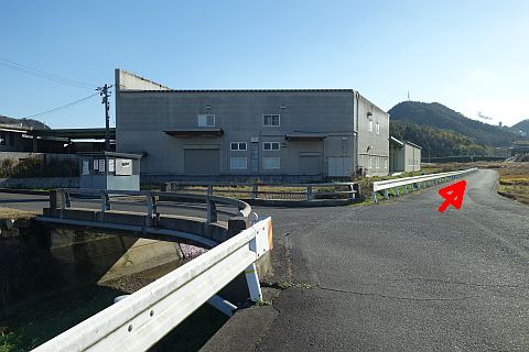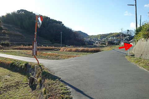 鳩岡川沿いの道を南へ206m進み、丁字路を右折して西へ30m上る