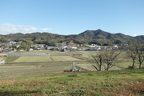 向かって左に向月、右に土居、その奥に聳える龍王山(289.2m)