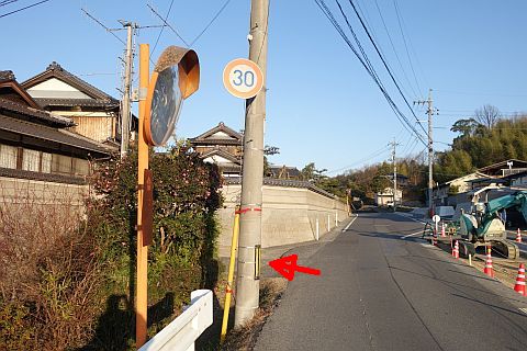 定月池跡地の西の十字路に戻って右折し、東へ130m上る