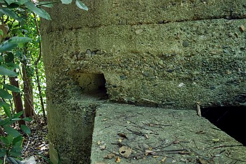 社前の山嘴、岬角をなして海上に斗出し、波浪に洗はれて巨岩海上に残骸を留む。